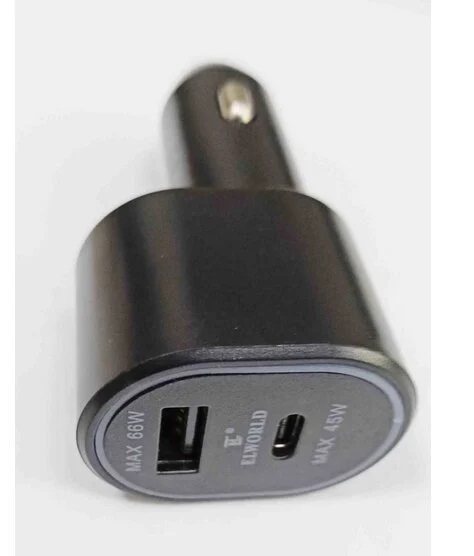 Adaptér do automobilových zapaľovačov, autonabíjačka, 1x USB 66W/1xPD 45W, Čierna