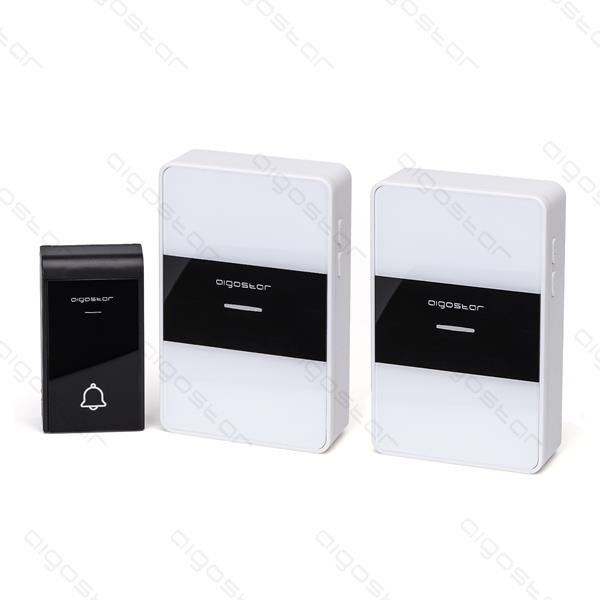 Bezdrôtový vodeodolný domový zvonček IP44 - Bielo-Čierny + 2x zvonček