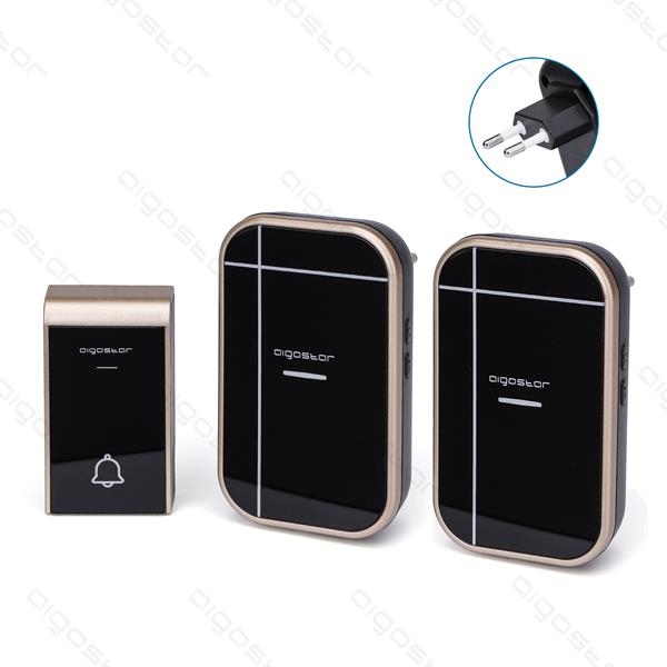Bezdrôtový vodeodolný domový zvonček IP44 , 230V - Čierno-zlatý - 2x zvonček