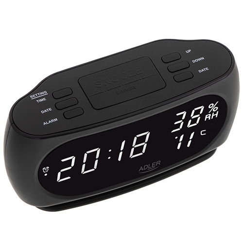 Malý, ale estetický a veľmi efektívny budík. Zobrazený čas je dokonale viditeľný vďaka LED displeju. Budík je napájaný z elektrickej siete. Budík ukazuje teplotu a vlhkosť vo vnútri miestnosti. Veľkou výhodou je jasný displej LED. Adler AD 1186 je ideálnym riešením pre tých, ktorí hľadajú nielen spoľahlivý budík, ale aj zariadenie, ktoré im pomôže lepšie porozumieť a kontrolovať prostredie v ich dome. Vďaka svojmu modernému dizajnu sa tieto hodiny - budík dokonale hodia do akéhokoľvek priestoru a zároveň ponúka funkčnosť a pohodlie používania.!