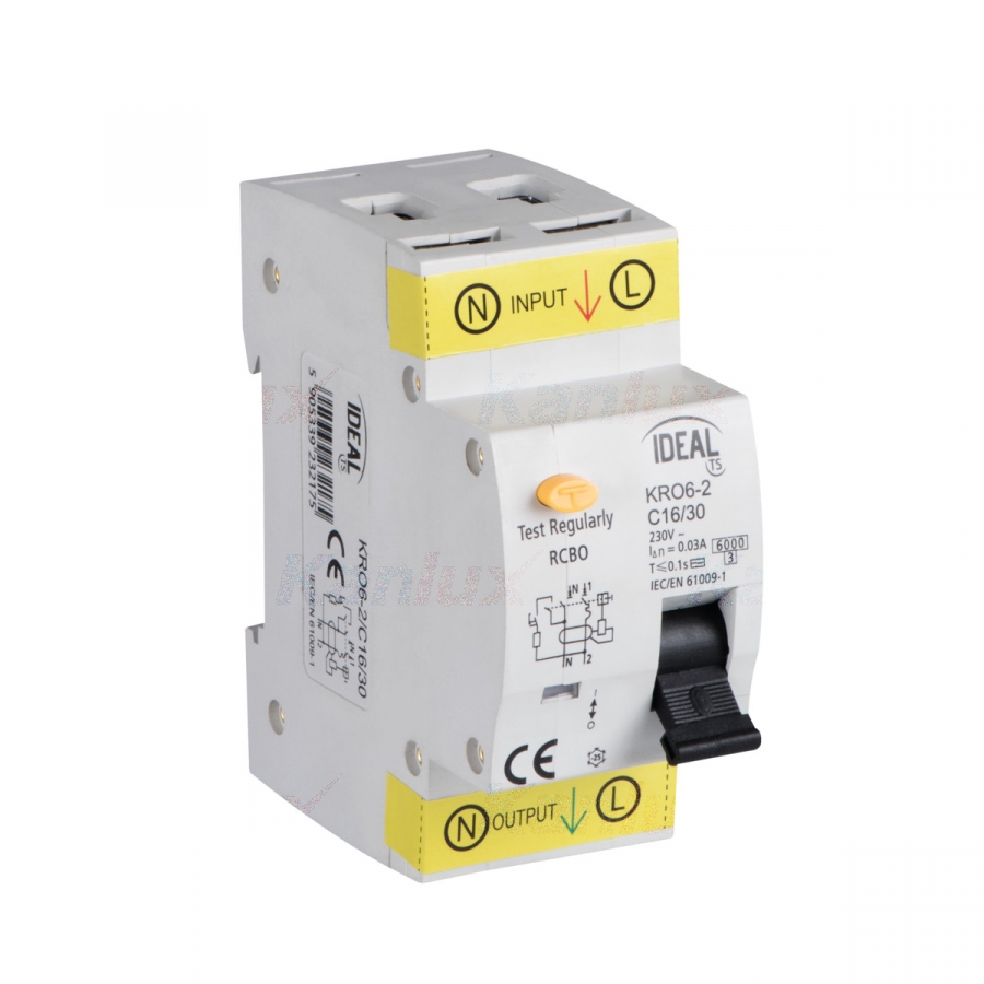 Kanlux IDEAL Prúdový chránič s ističom KRO6-2/C16/30