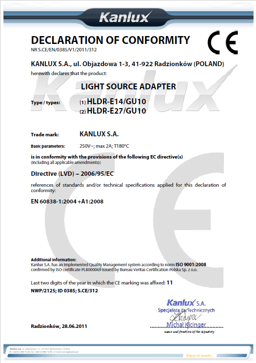 Kód produktu: V3 0102 Kanlux-2160 0103 181611