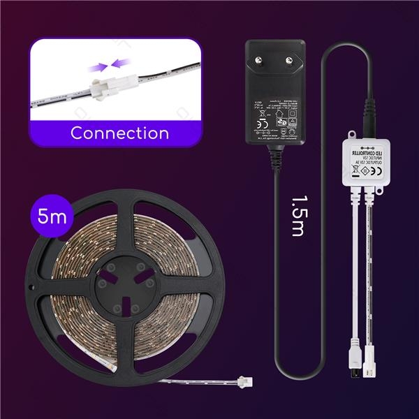 Sada obsahuje všetky potrebné komponenty pre montáž. Jednoduchá montáž. Led pás spojíte prostredníctvom konektora s prijímačom diaľkového vysielania a do prijímača napojíte konektor na zdroji. Čierna koncovka na prijímači diaľkového vysielania musí byť umiestnená viditeľne tak, aby ste na ňu pri prepínaní mohli nasmerovať diaľkové ovládanie. LED pás môžete stmievať zapínať/vypínať podľa potreby. Je samolepiaci a zaliaty v silikóne.