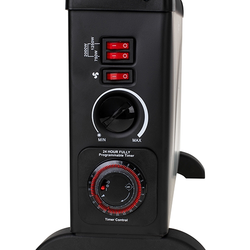 Elektrický konvektor s časovačom je prenosná alternatíva k bežnému radiátoru, ale dá sa umiestniť presne tam, kde ho potrebujete. Teplý vzduch stúpajúci z ohrievača efektívne zvyšuje okolitú teplotu, čo je užitočné v rôznych situáciách: napríklad keď v miestnosti nie je iný zdroj tepla, alebo keď sú zdroje tepla pre ubytovanú osobu nedostatočné. Konvektorový ohrievač bude dobre fungovať v bytoch aj kanceláriách. Prídavná funkcia TURBO prúdenia vzduchu zaisťujúca rýchlu distribúciu vzduchu. Radiátor je vybavený 3 stupňami výkonu: 750W, 1250W, 2000W.