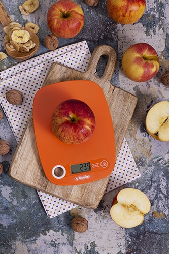 Kuchynská váha MS3159 sa mimoriadne ľahko skladuje. Vďaka špeciálnemu otvoru ho môžete pohodlne zavesiť a ušetriť tak miesto na poličke alebo v zásuvke. Váha má funkciu tarovania, nosnosť 5 kg a presnosť 1 g, takže suroviny potrebné na prípravu pokrmu ľahko odvážite.