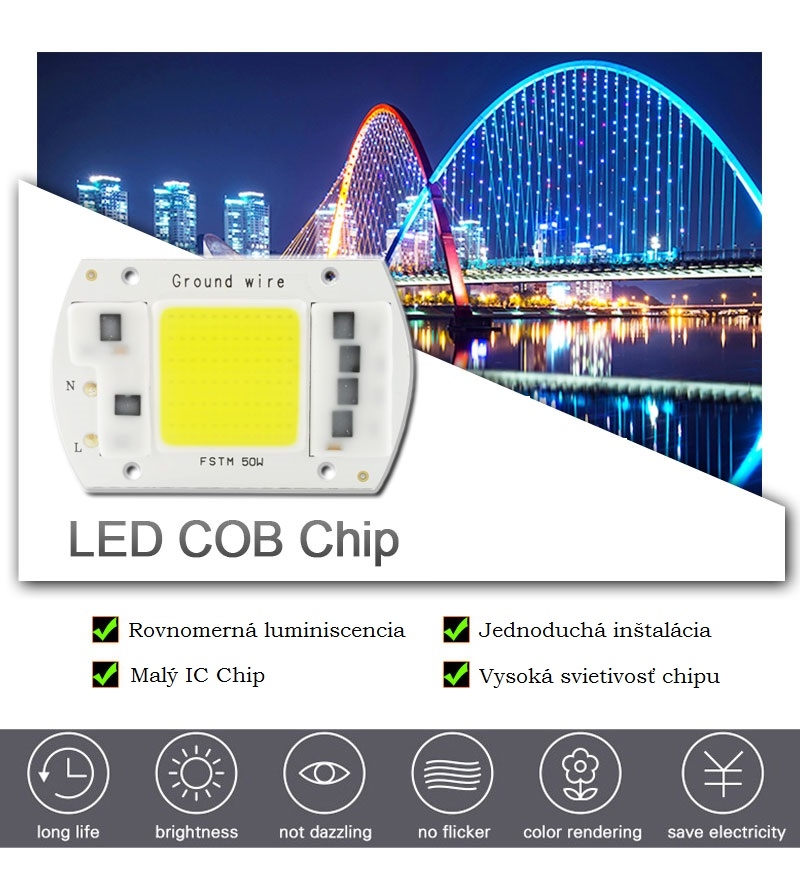 Náhradná COB Led dióda s príkonom 50W a výkonom 4500lm vo farbe svetla Studená biela