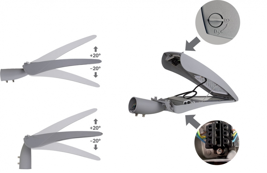 Pre montáž na výložník a zvislé stožiare s priemerom 60 mm.