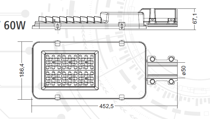 LED Pouličné verejné osvetlenie 60W/7200lm , IP65 , neutrálna biela