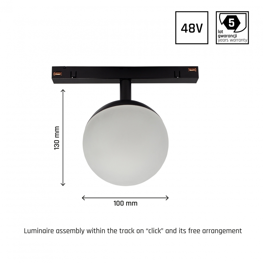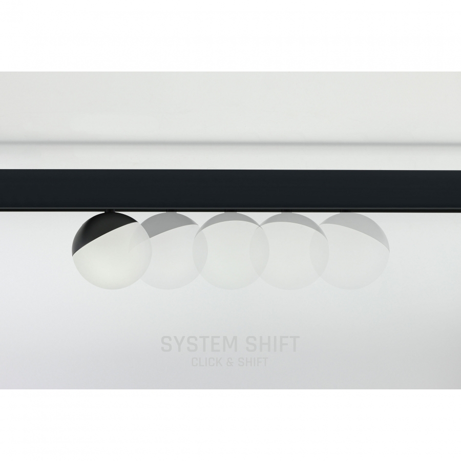 SYSTEM SHIFT - dráhové svietidlo GLOBE, výkon 5W, vysoká svetelná účinnosť 110 lm/W. Je vyrobený z kvalitných komponentov, s 5 ročnou zárukou. Má tiež veľmi vysoký index podania farieb RA>90. Svieti teplým svetlom (3000K), ktoré podporuje relaxáciu a odpočinok, vďaka čomu je osvetlená miestnosť útulnejšia. Určené pre montáž na koľajnicu.