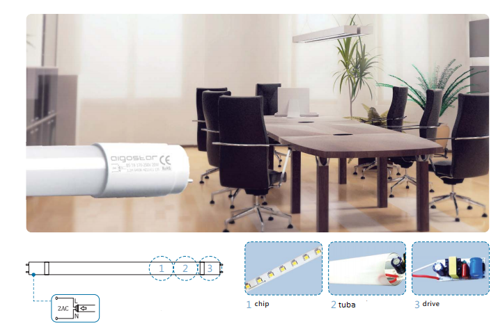 LED trubica nepotrebuje predradník ani štartér, napája sa priamo 230V.