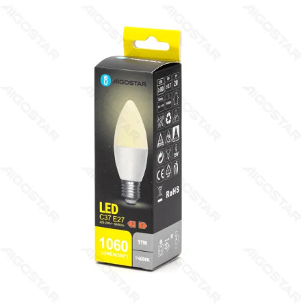 LED žiarovka E27 11W/1060lm , svieca C37 , BOX , Neutrálna biela