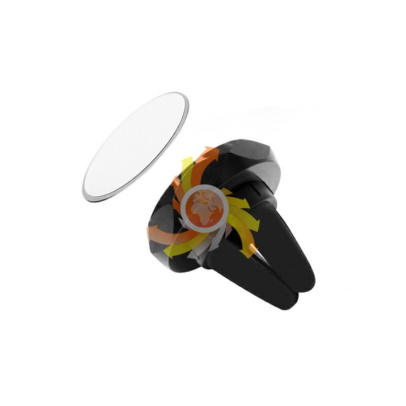 Magnetický držiak pre zariadenia GSM na pripevnenie na vetraciu mriežku vozidla.