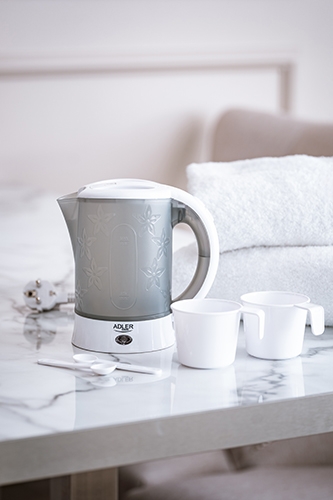 Malá cestovná kanvica AD 1268 bola navrhnutá pre ľudí, ktorí si pri cestovaní cenia vlastný zdroj vriacej vody. Pokiaľ máte prístup k elektrine, nemusíte sa obávať nedostatku kuchynky vo vašom ubytovaní. Kedykoľvek si môžete pripraviť čaj a kávu, variť bylinky alebo pripraviť jedlo jednoduchým zaliatím výrobku horúcou vodou.Vďaka malým rozmerom a hmotnosti sa cestovná kanvica AD 1268 ľahko zbalí a prepraví. Pre ešte väčšie pohodlie súprava obsahuje dva veľmi ľahké šálky a dve lyžičky.