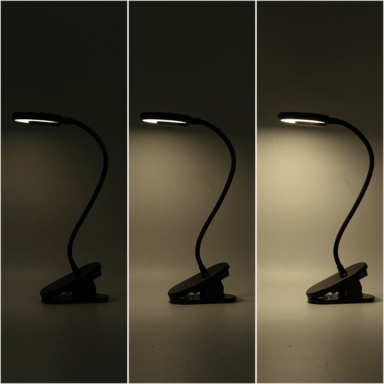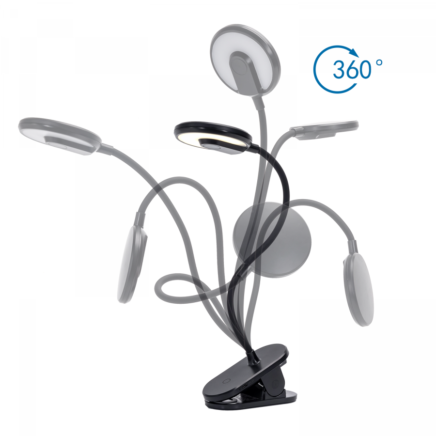 Nabíjateľná LED stolná flexibilná lampa 3W/210lm čierna s klipom