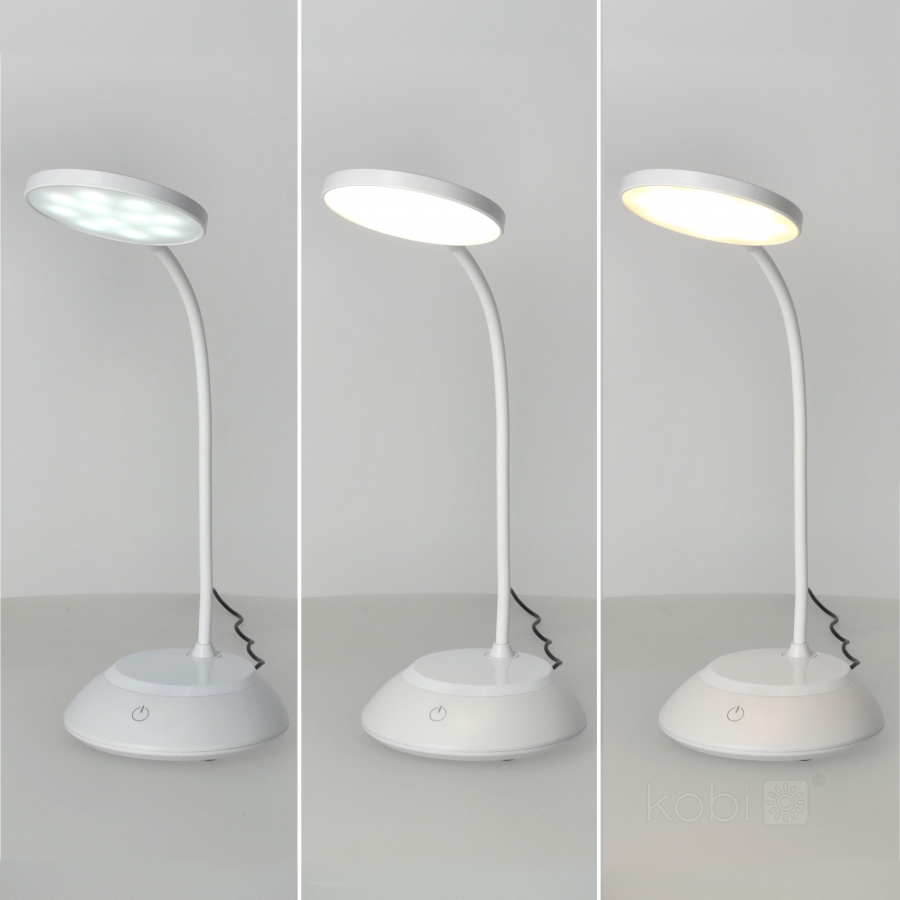 Nabíjateľná lampa ovládateľná dotykom. Lampu možno stmievať, meniť farby: teplá-neutrálna-studená.