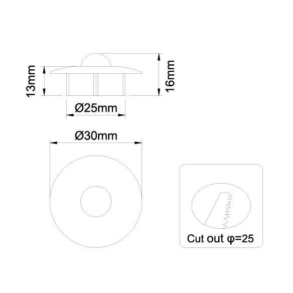 Montážny otvor: 25mm