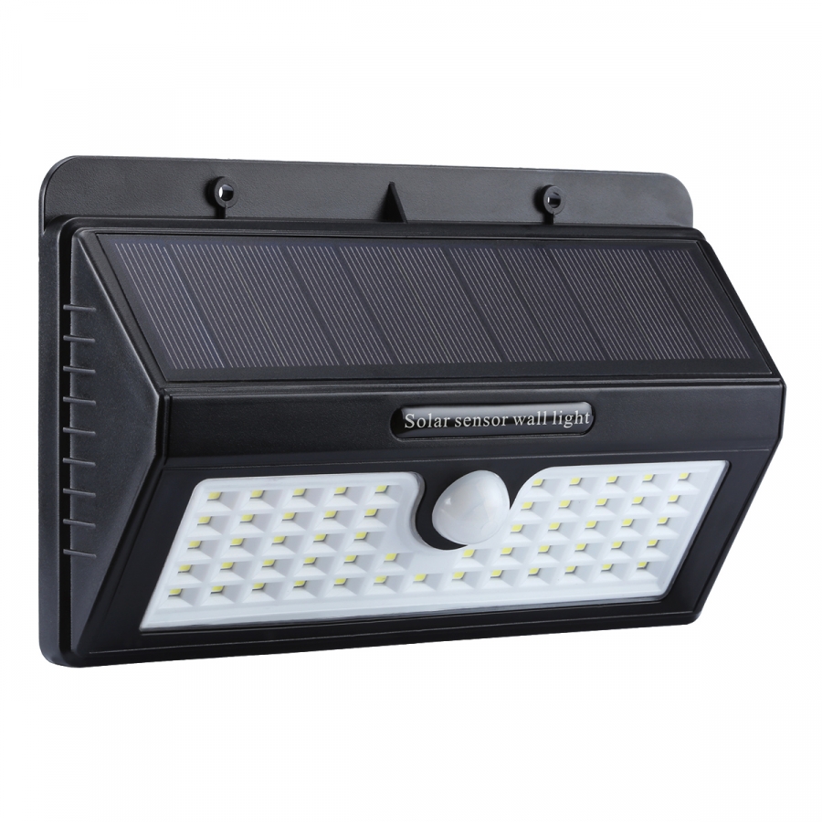 Nástenné Solárne LED osvetlenie IP65 , 55LED, so senzorom , Studená biela - 1-mód svietenia