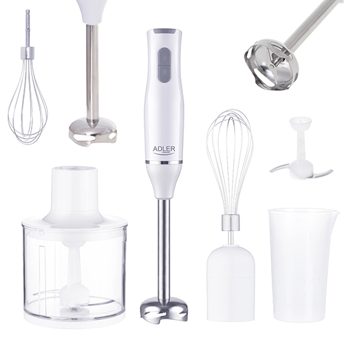 Tyčový mixér AD 4620 je vynikajúcou voľbou pre ľudí, ktorí oceňujú jednoduché spôsoby prípravy zdravých potravín v krátkom čase. Mixér je vybavený nádobou s nožami: 500 ml, nádobou s odmerkou: 700 ml a nerezovým mixovacím nástavcom. Okrem toho sa mixér dobre uplatní aj v tradičnej kuchyni, umožní vám pripraviť pyré a jednoducho pripraviť všetky druhy peny, krémové polievky, palacinkové cesto a iné jedlá vyžadujúce podobnú konzistenciu. Vďaka nemu môžeme jednoducho a rýchlo podávať obľúbené jedlá a doplnky, ušetríme čas a výrazne zjednodušíme zaradenie zdravých potravín do nášho jedálnička.