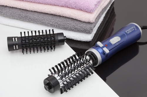 Elegantný kulmofén s dvoma vymeniteľnými kefami rôznej veľkosti.