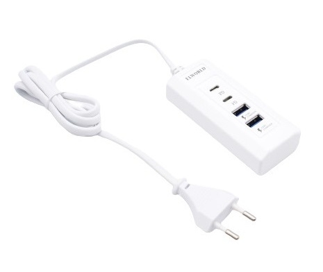 Elworld JXL-255 rýchlo nabíjačka, 4 porty (2 x USB, 2 x PD), s 1 metrovým napájacím káblom, biela.