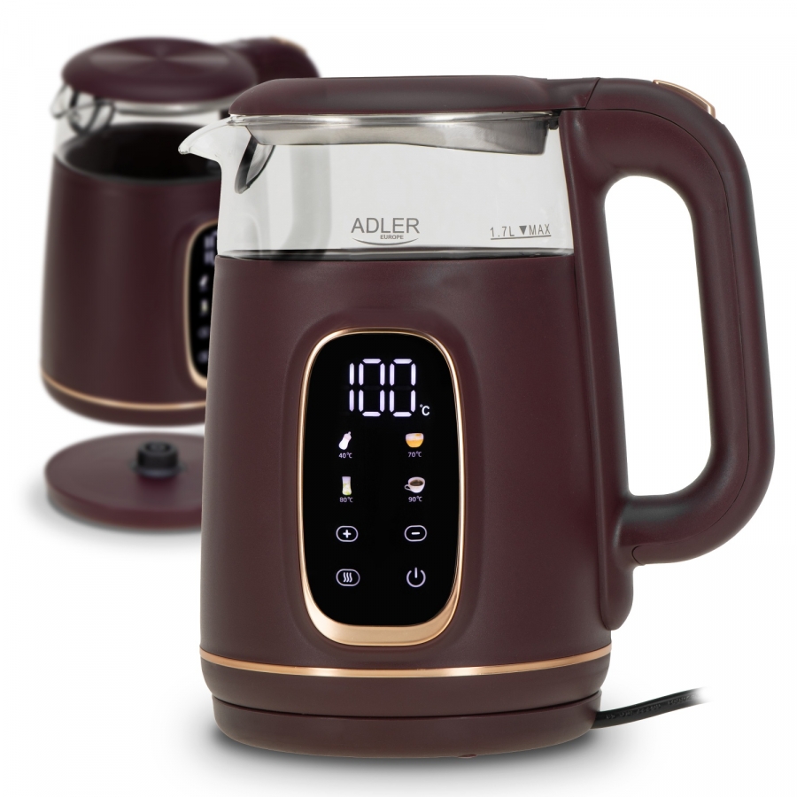 Rýchlovarná sklenená kanvica s reguláciou teploty - 1,7L , burgundy gold - 2200W