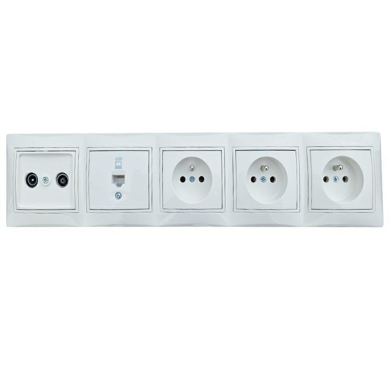 Sada Kanlux DOMO biely 3x Zásuvka, 1x RTV, 1xRJ45 - Sada zásuviek za televízor