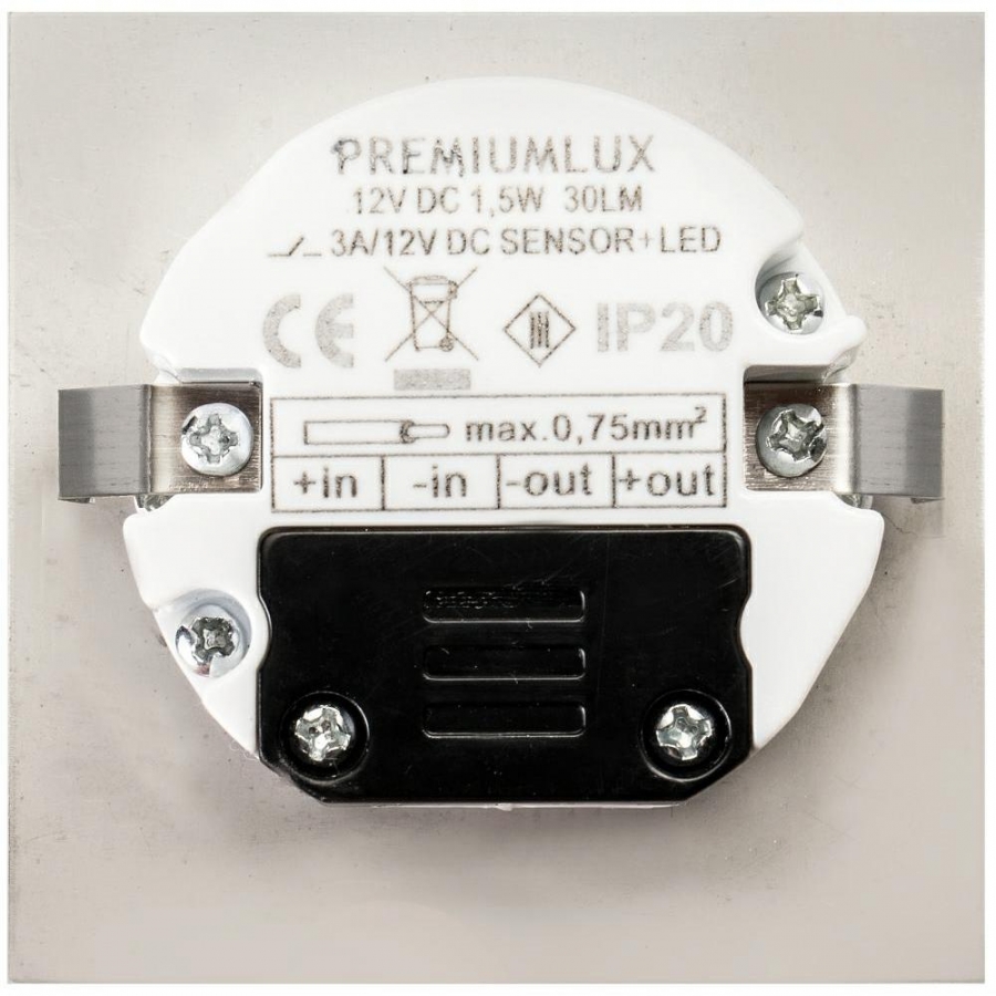 Schodové svietidlo štvorcové BERYL - satén nikel , 1,5W , 12V , teplá s PIR senzorom