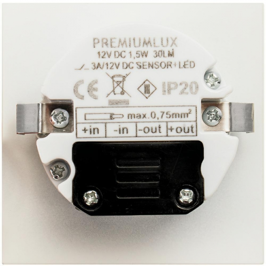 Svietidlo sa inštaluje do elektroinštalačných krabíc 60mm. Napájanie svietidla je 12VDC. Svietidlo má zabudovaný PIR senzor pohybu. Dekoračné schodové svietidlo vyžaruje mierny svetelný lúč cez mliečny difúzor. Svietidlo bolo vyrobené z vysokokvalitných SMD diód, ktoré sú charakterizované nízkou spotrebou energie.