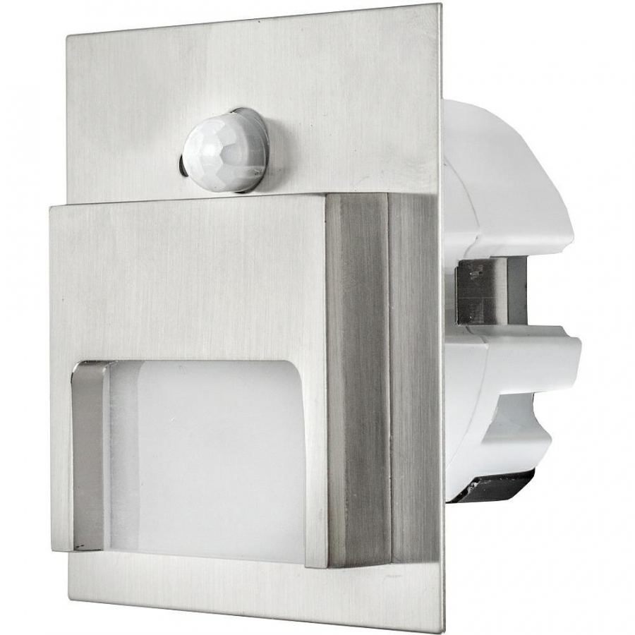 Schodové svietidlo štvorcové ONTARIO - satén nikel , 1,5W , 12V , neutrálna s PIR senzorom