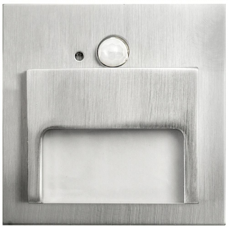 Schodové svietidlo štvorcové ONTARIO - satén nikel , 1,5W , 12V , studená s PIR senzorom