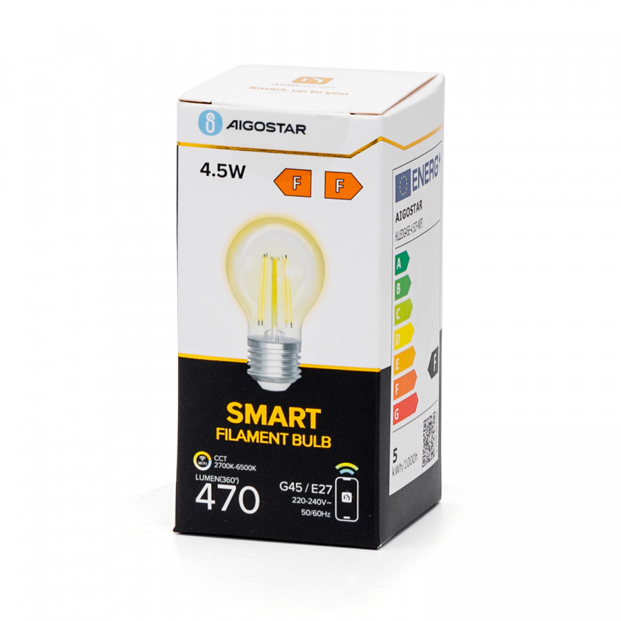 SMART LED žiarovka E27 4,5W/470lm , glóbus G45 LED vlákno , CCT