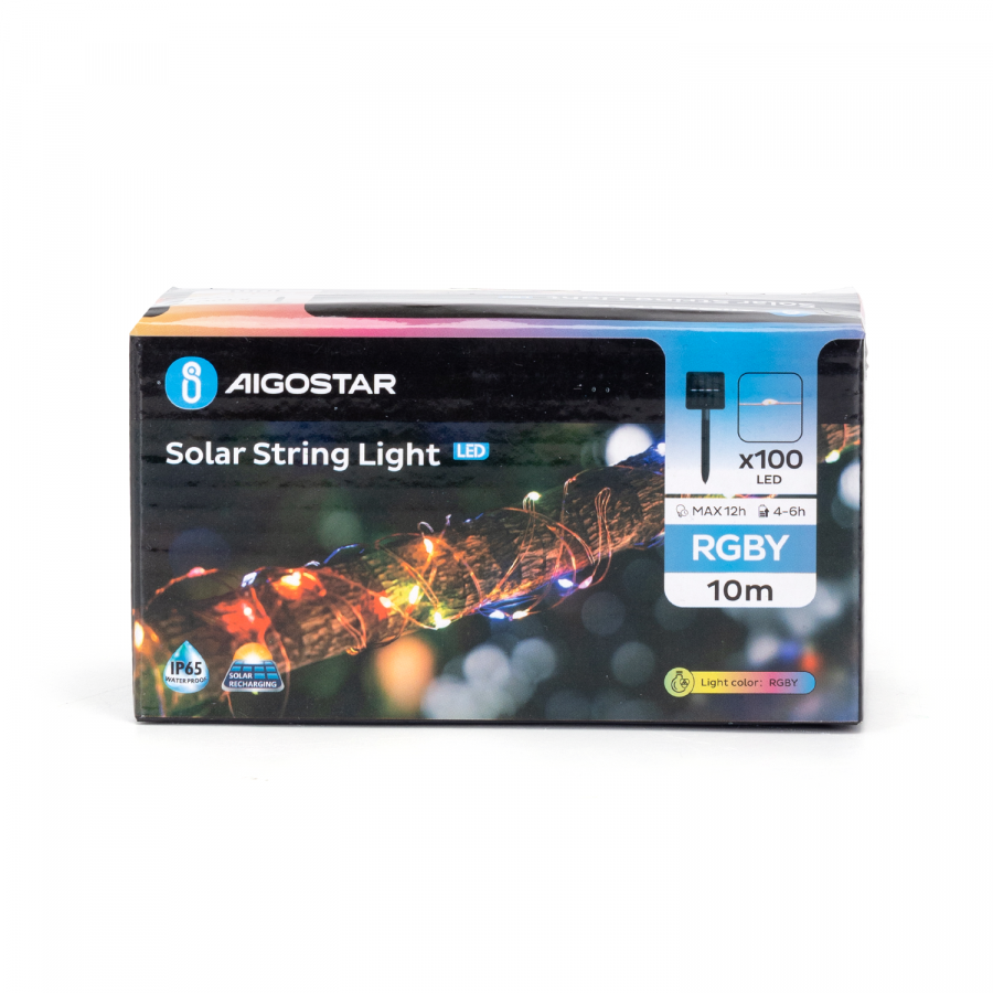 Solárna Svetelná dekoračná reťaz , girlanda IP65 , 100diód, 10M , Multicolor