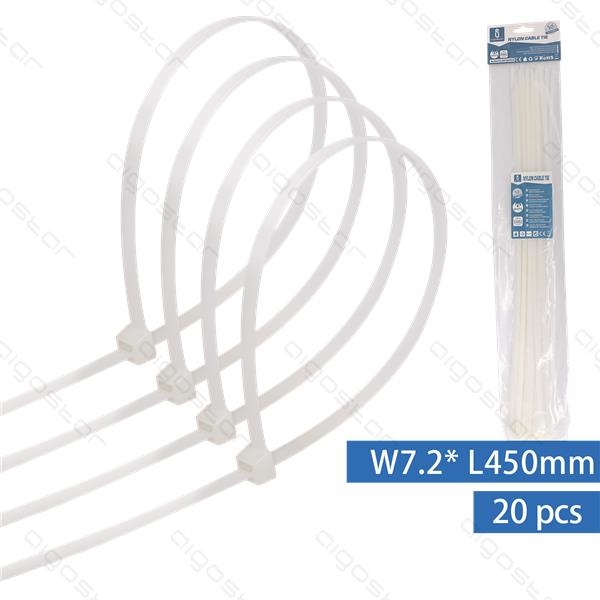 Sťahovacie pásky, riteny 450x7,2mm, Biele - 20kusov