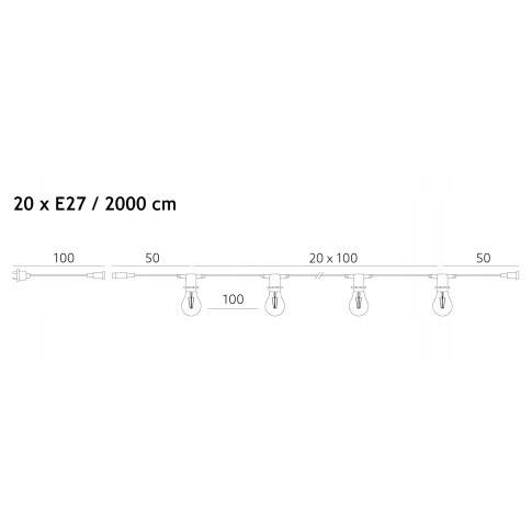 Svetelná dekoračná reťaz , girlanda , 20xE27 , 230V , 20M