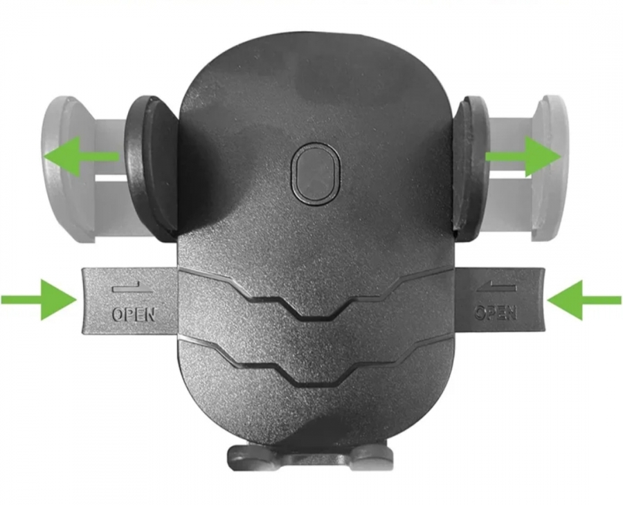 Úchyt na telefón je vhodný pre smarfóny všetkých rozmerov. Vďaka nastaviteľným ramenám si držiak uchytí telefón úplne sám a to tak, že po vložení telefónu stlačíte tlačidlo na ploche držiaka. Ramená sa tak samé uzavrú. Spodné nožky je potrebné manuálne nastaviť - čo je výborné v prípade že máte jeden z väčších smartfónov. Ak chcete mobil z držiaka uvolniť, stačí stlačiť ramená vyznačené nápisom ,,OPEN´´.Celý držiak od úchytu uvolníte odskrutkovaním skrutky na zadnej časti držiaka.