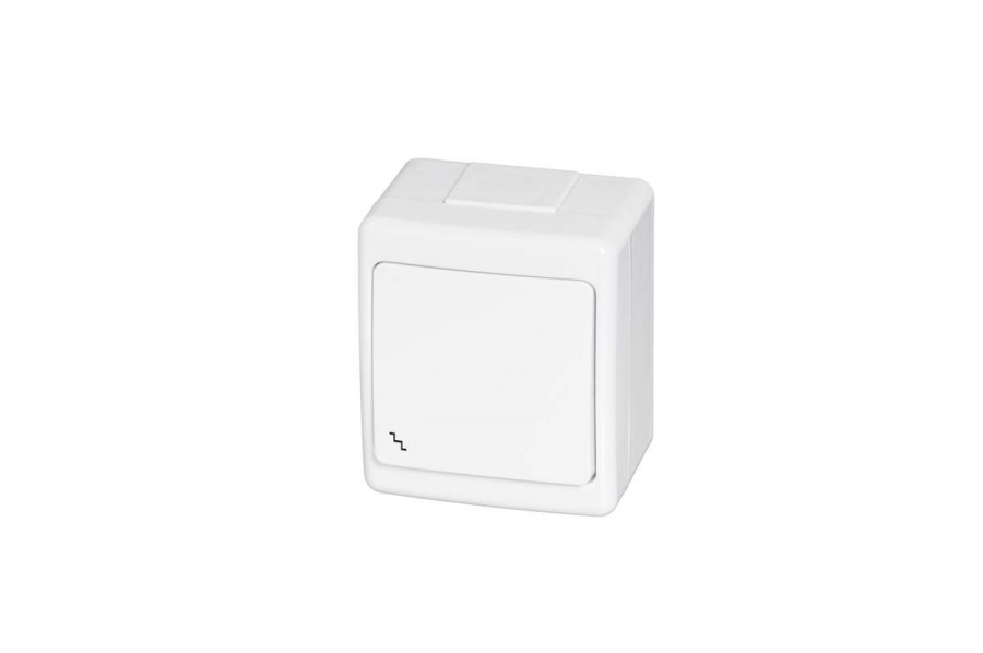 Vodeodolný jednopáčkový schodiskový vypínač č.6 na stenu , IP44 , Biela