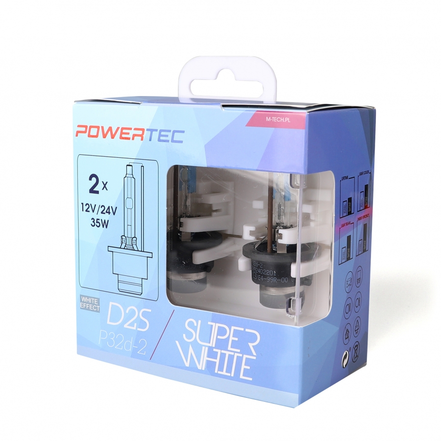 SuperWhite xenónová výbojka POWERTEC sa vyznačuje bielym intenzívnym svetlom s modrou líniou na svetelnej časti.