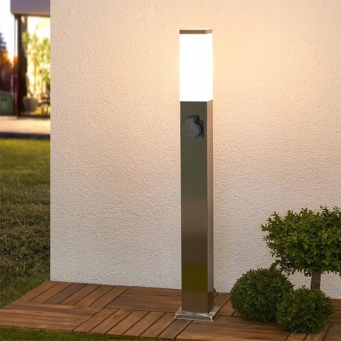 Záhradné vonkajšie stĺpikové svietidlo PRIMI L so SUKO zásuvkou , 1xE27 , Nerez