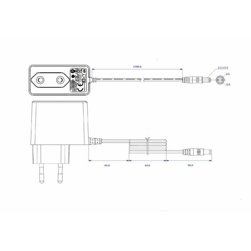 Zásuvkový napájací zdroj 15W ; 2,1/5,5 ; 1,25A 12V DC IP20