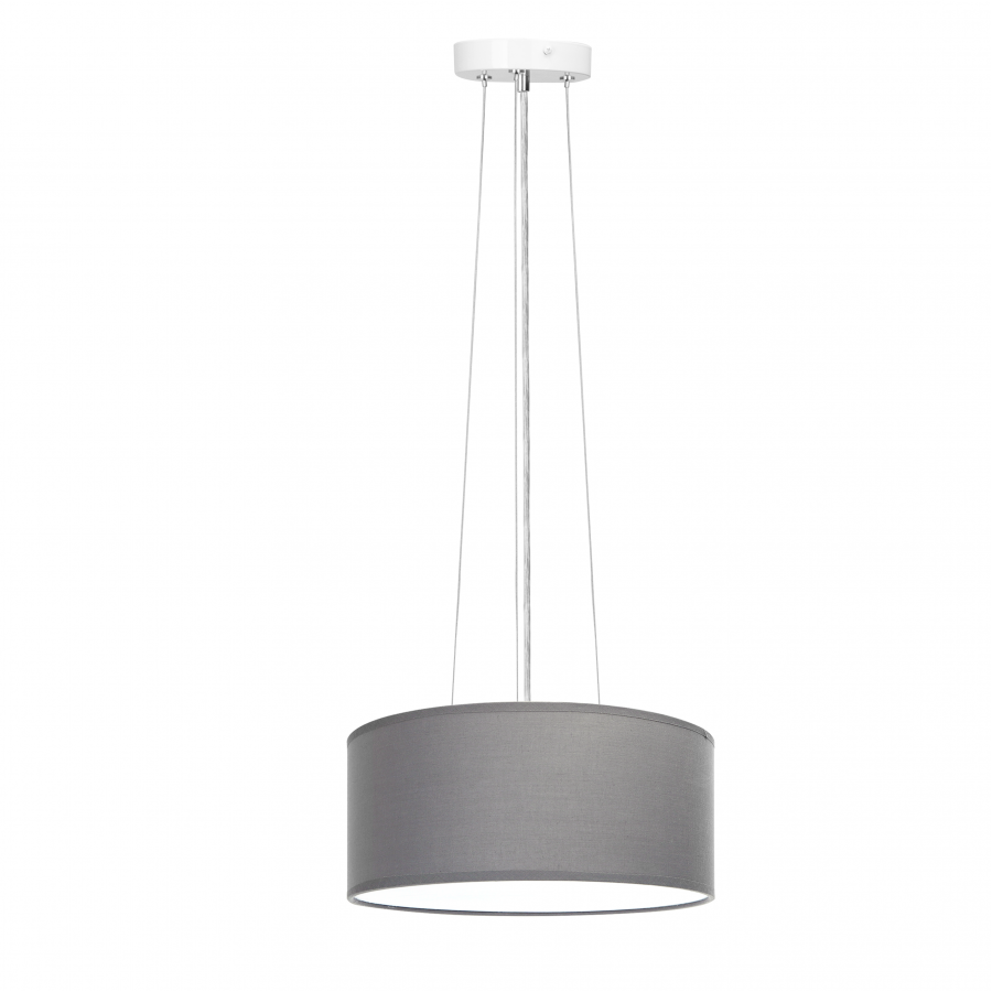 Svietidlo je vyrobené z kovu, tienidlo zo sivej textílie a difúzor z mliečneho plastu,